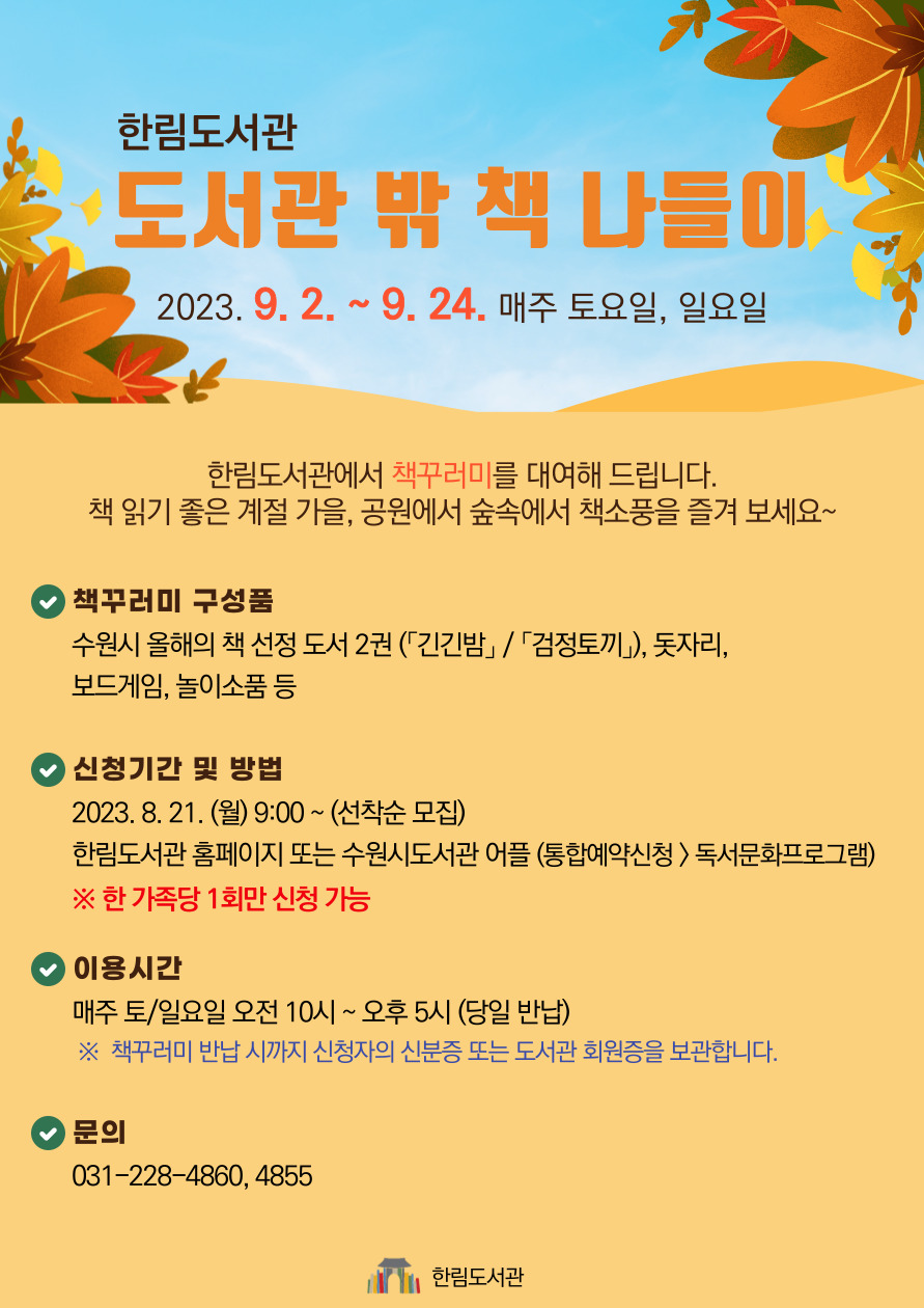 - 책꾸러미 수령/반납 장소: 한림도서관 1층 데스크